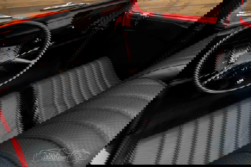 La Citroën que nous proposons à la vente ici ressemble à une vraie 2CV. Elle est finie dans une belle peinture rouge qui fait de ce classique un véritable accroche-regard. L'intérieur est équipé d'une sellerie en similicuir noir et un toit ouvrant noir a été choisi que vous pouvez facilement ouvrir dès que le soleil brille.