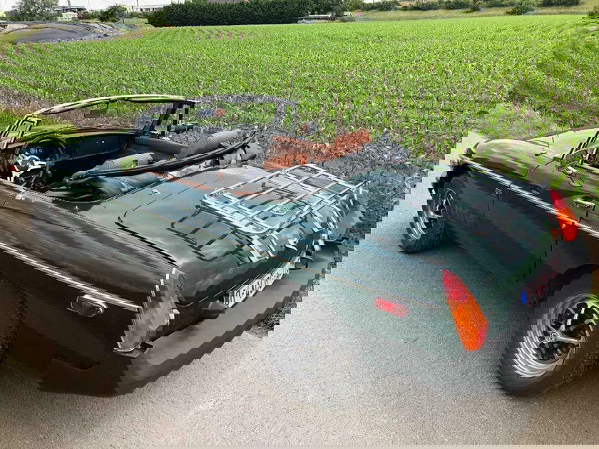 Le véhicule est en très bon état , Il est dans cette magnifique couleur anglaise « Racing Green », sans corrosion, il roule à merveille, un vrai plaisir. La mécanique et la carrosserie sont en ordre, la capote est neuve (2020), tout comme les pneus (2020, ±5000 km) et la ligne d’échappement neuve (2020). Il n’est pas en niveau concours, mais il pourrait facilement le devenir via l’installation de roues à rayons, de pare-chocs chromés, …