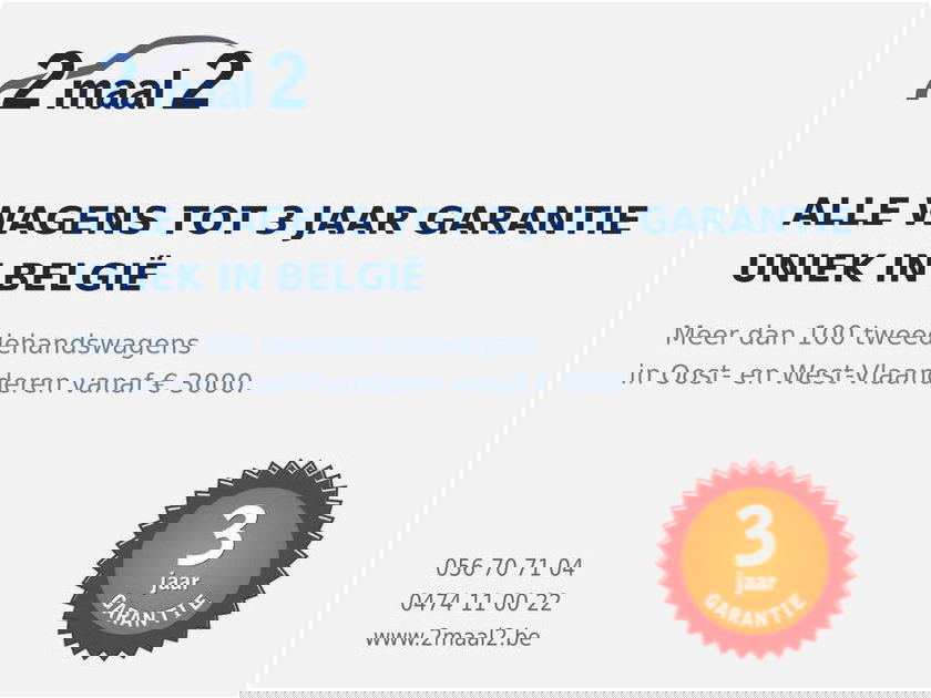 Pour plus d'info ou autre renseignements concernant notre large stock de voitures, consultez nous par notre site 2maal2.be