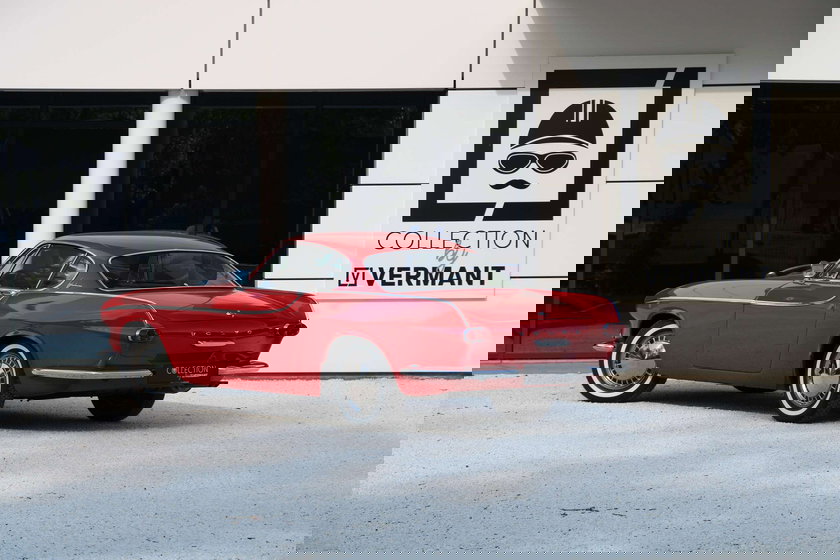 The car was sold in 1961 in America, later came to Belgium via the Netherlands and received a full "nut & bolt" restoration. During this thorough reconstruction, it was considered to keep all parts in their original design AND color. For example, great importance has been attached to the use of correct materials and to also preserve all details as they originally came from the factory. In the trunk, the tools are attached to the side panels in the original way. This is very exceptional and rare to find on the cars. In the engine compartment this Jensen is still equipped with the typical point radiator and the small filters on the SU carburetors. On the outside we find the original red color. The rims are also finished in the correct shade of dark gray and then equipped with the very rare and original chrome wheel covers.