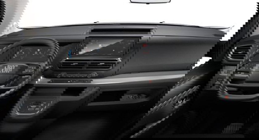 Pack d'équipements : système d'appel d'urgence eCall, banquette 3 places à la 2e rangée, banquette 3 places à la 3e rangée, pack 9 places, système de navigation audio : radio avec écran tactile 10 pouces, airbag passager (désactivable), programme électronique de stabilité (ESP), système d'aide à la conduite : détection de fatigue, kit mains libres Bluetooth, commande du hayon par télécommande, fixations Isofix pour siège enfant à l'arrière, climatisation à l'arrière, climatisation automatique bi-zone, réception radio numérique (DAB), pneus 215/60 R17, caméra de recul Park View, banquette arrière rabattable/divisible (60/40), Revêtement/rembourrage des sièges : tissu, interface sans fil pour smartphone (Apple CarPlay et Android Auto), jantes en acier 7x17, port USB, verrouillage centralisé avec télécommande (clé radio (2)), carrosserie/structure : fourgon, moteur 2,0 L - 130 kW BlueHDi, empattement 3275 mm, porte coulissante à droite, siège avant gauche réglable en hauteur, avec soutien lombaire et accoudoir, banquette double à droite avec rangements sous la banquette, système antiblocage (ABS), type de transmission : traction avant, boîte de vitesses automatique (8 rapports), airbags conducteur/passager, lève-vitres électriques à l'avant, régulateur de vitesse (tempomat), volant multifonction pour la commande audio, rétroviseurs extérieurs réglables électriquement et chauffants, capteur de pluie/lumière, essuie-glaces avec capteur de pluie, aide au stationnement arrière, système d'aide à la conduite : assistance au freinage d'urgence autonome (AEB), système d'aide à la conduite : alerte de franchissement de ligne, système de contrôle de la pression des pneus, filtre à particules
