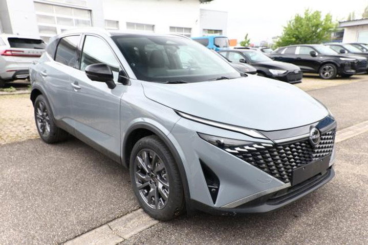 Pack Design (barres de toit argentées / toit panoramique en verre), système audio BOSE Premium (10 haut-parleurs), système d'aide à la conduite : ProPilot avec Navi-Link, alerte de ceinture de sécurité, affichage tête haute, rétroviseur intérieur sans cadre avec anti-éblouissement automatique, airbags de tête à l'avant, supports lombaires pour les sièges avant, jantes en alliage 19 pouces, navigation connectée au smartphone (via Apple CarPlay / Android Auto /...), réception radio numérique (DAB), pneus 235/50 R19, faibles émissions conformes à la norme Euro 6e (EU6 EA), airbags latéraux avant, siège avant gauche à 8 réglages électriques avec fonction mémoire, interface sans fil pour smartphone (Apple CarPlay & Android Auto), pack Business (socle de recharge par induction pour smartphone / hayon et couvercle à commande électrique (ouverture, commandée par capteur)), système de verrouillage/démarrage Intelligent Key (accès sans clé / bouton Start-Stop), volant (cuir) multifonction (commandes audio au volant), pack hiver (volant chauffant / sièges avant chauffants / pare-brise chauffant), Éclairage d'ambiance, antenne de toit en forme d'aileron de requin, ciel de pavillon noir, répartition électronique de la force de freinage (EBD), séparateur de coffre (Flexi-Board), limiteur de vitesse, tableau de bord à écran couleur TFT (12,3 pouces), Carrosserie : 5 portes, hybride léger 116 kW (moteur 1,3 L - 116 kW DIG-T MHEV), accoudoir central arrière avec porte-gobelets, filtre à particules pour moteur à essence (OPF), frein de stationnement électrique, pommeau de levier de vitesses en cuir, siège avant gauche réglable en hauteur, siège avant droit réglable en hauteur, pare-soleil avec miroir (éclairé), écran tactile couleur (12,3 pouces), prise USB à l'arrière, système antiblocage (ABS), système d'aide à la conduite : détection d'objets en mouvement (MOD, détection des piétons et des objets en mouvement), type de transmission : traction avant, programme de stabilité électronique (ESP), boîte de vitesses automatique à variation continue - X-Tronic-CVT, climatisation automatique bi-zone, airbags conducteur et passager avant, lève-vitres électriques à l'avant et à l'arrière, banquette arrière rabattable en deux parties, revêtement des sièges : similicuir, vitres arrière teintées, sélecteur de mode de conduite, Around View Monitor (vue panoramique à 360°), fonction Auto-Hold, système d'aide à la conduite : alerte de collision avant (Forward Collision Warning, FCW), système d'aide à la conduite : aide au démarrage en côte, système d'aide à la conduite : reconnaissance des panneaux de signalisation, régulateur de vitesse (cruise control) avec régulation de distance, système d'aide à la conduite : système de sécurité ERA GLONASS avec appel d'urgence automatique, rétroviseurs extérieurs rabattables électriquement, rétroviseurs extérieurs réglables et chauffants électriquement, allumage automatique des phares, système d'aide à la conduite : Assistant de feux de route adaptatif, système d'aide à la conduite : assistant d'angle mort, feux arrière à LED (super rouge), essuie-glaces avec capteur de pluie, phares entièrement à LED, feux de jour à LED, système d'aide à la conduite : alerte de franchissement de ligne active, avec intervention corrective sur les freins, système d'aide à la conduite : assistance au freinage d'urgence autonome, système d'aide à la conduite : Capteur de détection de fatigue, Système d'aide à la conduite : Avertisseur de trafic transversal arrière (Rear Cross Traffic Alert, RCTA), Système d'alarme antivol