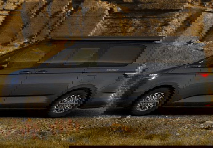 Chauffage autonome pour fonctionnement permanent et chauffage d'appoint fonctionnant au carburant, Climatisation Climatronic 3 zones y compris commande arrière, Système de navigation audio Discover Pro (écran couleur tactile 10", y compris Streaming & Internet), Pack d'assistance à la conduite Basic (Système de service : mise en réseau intelligente du véhicule (Car2X) / Système d'assistance à la conduite : régulation automatique de la distance (ACC y compris. Stop&Go) / Système d'aide à la conduite : assistant de changement de voie (Side Assist) avec assistant de sortie de stationnement et avertissement de sortie), Store (boîtier et baguettes de store noirs, gauche), Jantes en alliage léger 6,5x16 (Syrakus) (antivol pour roues (antivols de jantes)), Pack Parc Basic (caméra de recul / Système d'aide à la conduite : assistant de stationnement (Park Assist) incl. aide au stationnement à l'avant et à l'arrière), Système de fermeture/démarrage Keyless Advanced avec sécurité de coffre-fort, Sièges dans la cabine : sièges conducteur et passager chauffants, Système d'alarme antivol + surveillance intérieure / protection anti-remorquage + avertisseur sonore de secours, Moustiquaires vitres coulissantes gauche et droite incl. Vitrage isolant à l'arrière (moustiquaire de la vitre coulissante gauche / moustiquaire de la vitre coulissante droite), revêtement des sièges / sellerie : Tissu Melange, Table de camping et chaises pliantes, Pneus 215/65 R16, Faible émission de polluants selon la norme antipollution Euro 6e (EU6 EA), Toit relevable à commande manuelle avec vitre avant et ouverture frontale, Soufflet gris, Rétroviseurs extérieurs peints en noir, Clignotants LED intégrés dans les rétroviseurs extérieurs, Revêtement de sol dans l'espace de chargement/passagers en matière synthétique, Digital Cockpit Pro (affichage numérique des instruments), Interface électrique pour utilisation externe (bus de données CAN), Système d'assistance à la conduite : Assistant d'évitement et de changement de direction, Pare-brise en verre feuilleté teinté, Radiocommande (2), Hayon avec vitrage, Equipement intérieur : Incrustations décoratives Scale Light Grey, Eclairage intérieur Camper dans l'espace passagers, Rétroviseur intérieur anti-éblouissement, Intelligent Speed Assist incl. Limiteur de vitesse, Carrosserie/carrosserie : Moteur Caravane, Haut-parleurs (8), Réglage de la portée des phares, Services mobiles en ligne App-Connect incl. App-Connect Wireless (Apple CarPlay, Android Auto), Moteur 2,0 Ltr. - 110 kW TDI, Pack Non-fumeur, Réception radio numérique (DAB+), Empattement 3124 mm, Essuie-glaces à fonctionnement intermittent, réglables, Porte coulissante de chargement/cabine passagers gauche, Porte coulissante de chargement/cabine passagers droite, Tiroirs sous les sièges extérieurs dans l'espace conducteur et l'espace passagers et 2 poubelles, Equipement de siège : 4 sièges, Sièges dans l'espace de chargement/cabine passagers : 1.Cuisine d'été avec table rabattable extérieure et prise 230V, en Raven / Platin Sandwick, Pare-soleil avec miroir (éclairé), Prise 230V (avec alimentation pour recharge de la batterie), Prise 230V dans la cabine, Système d'occultation : stores et tapis thermiques, Préparation pour éthylotest anti-démarrage (Alcolock), Système d'alarme pour ceintures de sécurité à l'avant et à l'arrière, Baguette décorative entre les phares : peinte en noir, Poids total autorisé en charge (P.T.A.C.) : 1,5 kg. Poids total en charge 2,85 t, Interface pour téléphone mobile Bluetooth, Interface multimédia 2 x USB à l'avant et 4 x prise de charge USB dans l'espace passagers (type...