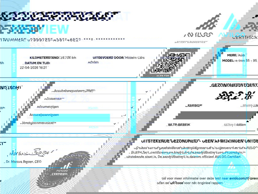 + Audi fabriekswaarborg op de batterij 8 jaar tot 160.000 KM.