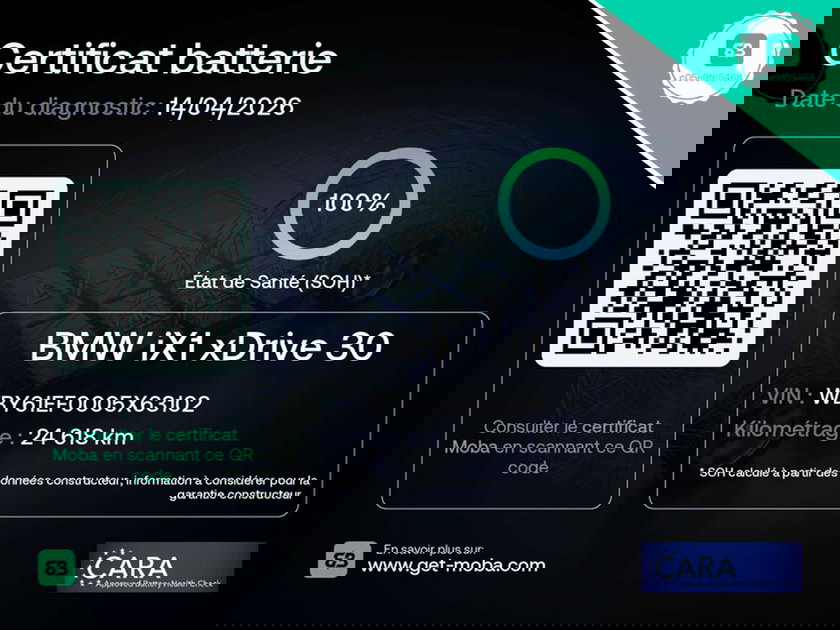 - Test santé batterie réalisé : État de santé (SoH) vérifié et certifié par nos experts.