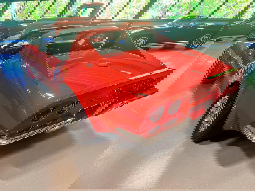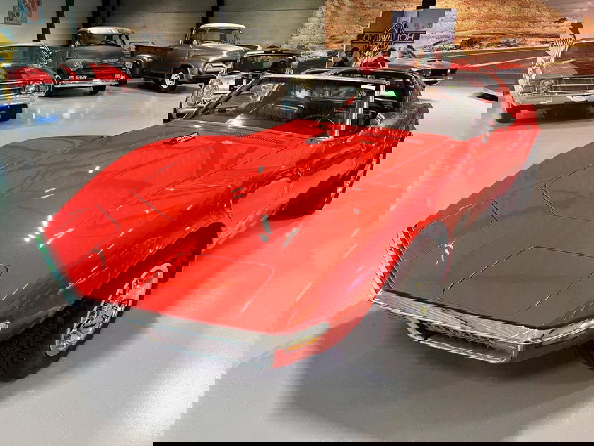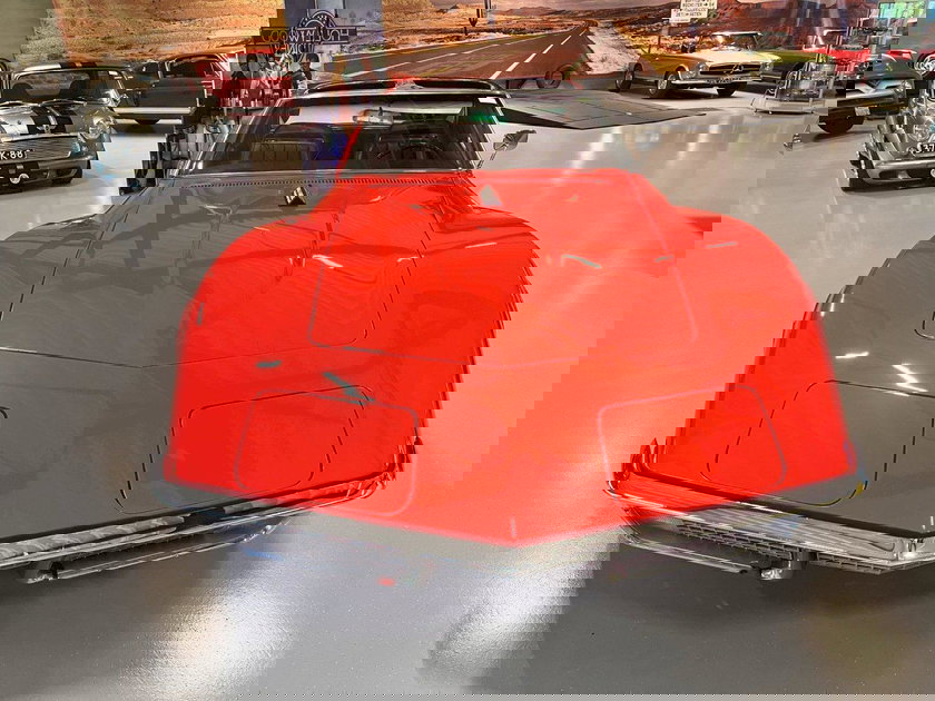 In een stralend rode lak schittert deze schoonheid van karakter: het slanke “Coke-bottle” silhouet, de lange agressieve motorkap en de iconische C3-lijnen maken hem tot een visueel meesterwerk.