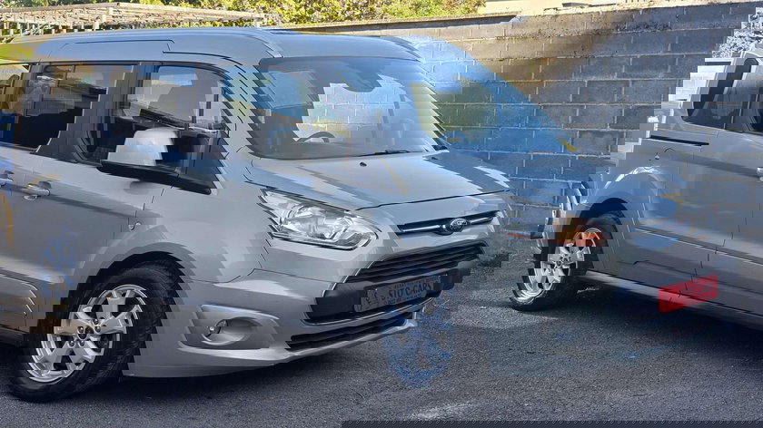 Ford Tourneo Connect Grand – monospace diesel, boîte manuelle, 7 places. Véhicule familial spacieux avec équipement complet incluant navigation et toit panoramique.