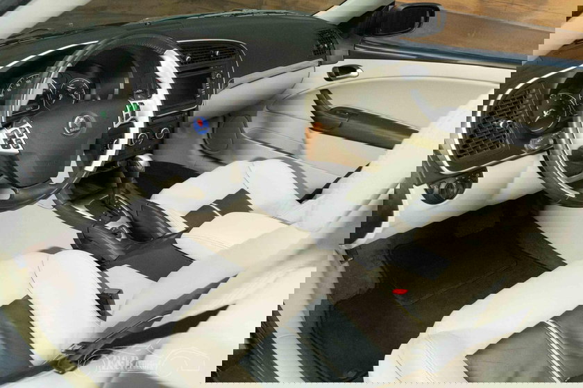 Het donkerblauwe metallic lakwerk vormt een stijlvol geheel met de elektrisch bedienbare donkerblauwe soft top, terwijl de originele Aero-velgen de auto een sportieve uitstraling geven. Binnenin vindt u een luxe two-tone crème/zwarte bekleding, gecombineerd met elektrisch verstelbare en verwarmbare stoelen met memory, climate control, cruise control en een navigatiesysteem. Dankzij praktische extra’s zoals parkeersensoren achter en de doordachte ergonomie biedt deze Saab een ideale balans tussen comfort, uitstraling en dagelijks gebruiksgemak.