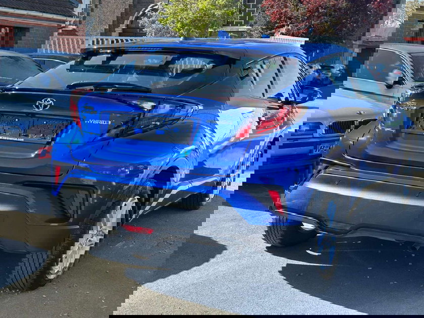 Toyota C-HR Hybrid 1.8i VVT-i GR – benzine, automaat, eerste eigenaar met 12 maanden garantie. Gematigde kilometerstand van 87.414 km, uitzonderlijk verbruik van 3,8 l/100 km. Goed uitgerust voertuig met moderne technologie en rijhulpsystemen.