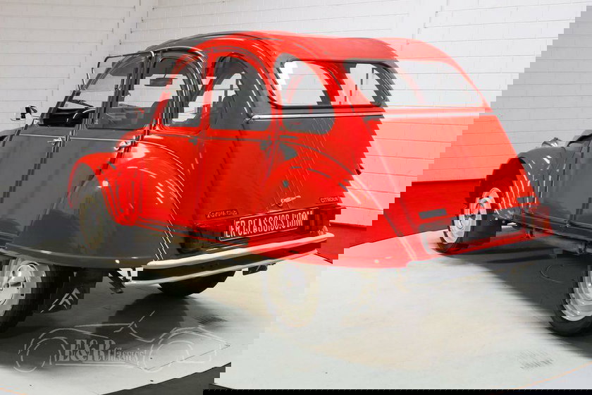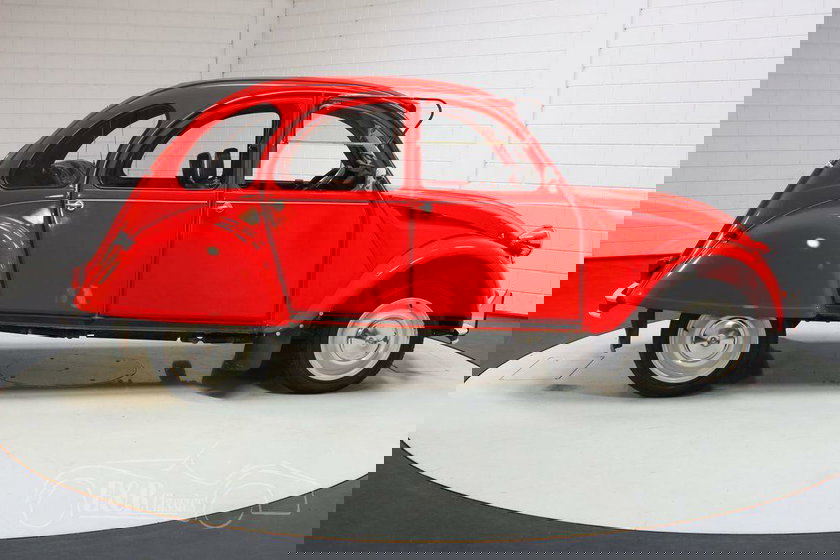 De Citroën 2CV die we hier te koop aanbieden is echt een plaatje om te zien. Het rode lakwerk past helemaal bij de Franse klassieker en combineert erg mooi met de beigekleurige wielen, de chromen koplampen en het rode roldakje. Het interieur verkeert in een zeer nette staat en is uitgerust met luxe, geruite bekleding en stoelen met hoofdsteunen.