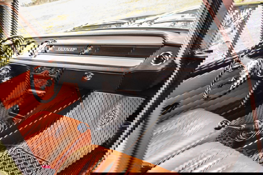 The interior of this beautiful Fulvia Berlina is undoubtedly in exceptional condition, and the cognac leather seats and rear bench are stunning to behold. Moreover, the seats are exceptionally comfortable. The door panels are the same cognac color, creating a stylish combination. The dashboard is in superb condition, and all instruments are, of course, in perfect working order. It's as if the car just rolled out of the factory. The various chrome and trim pieces in the interior are in perfect condition. The headliner is also in absolutely stunning condition.