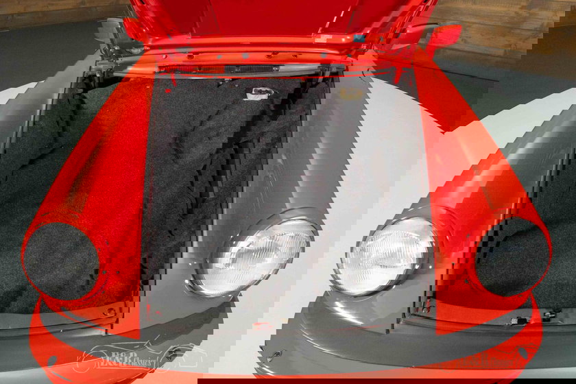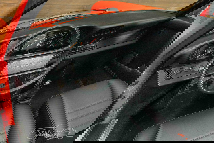Het exterieur wordt gekenmerkt door het opvallende rode lakwerk dat prachtig contrasteert met de zwarte accenten en de klassieke zwarte Fuchs velgen. De brede heupen en herkenbare lijnen van de 911 komen in deze uitvoering perfect tot hun recht. Het afneembare targa-dak biedt de mogelijkheid om in een handomdraai van coupé naar open rijbeleving te gaan. Het interieur is uitgevoerd in stijlvol zwart en verkeert in een nette conditie, met comfortabele elektrisch verstelbare stoelen en een overzichtelijk dashboard dat volledig gericht is op de bestuurder. De combinatie van het rode exterieur en het zwarte interieur geeft deze Porsche een tijdloze en sportieve uitstraling.